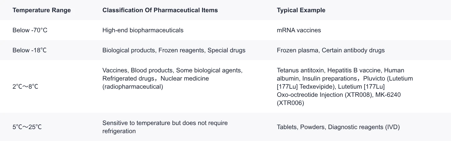 Transport Temperature Ranges and Applicable Products