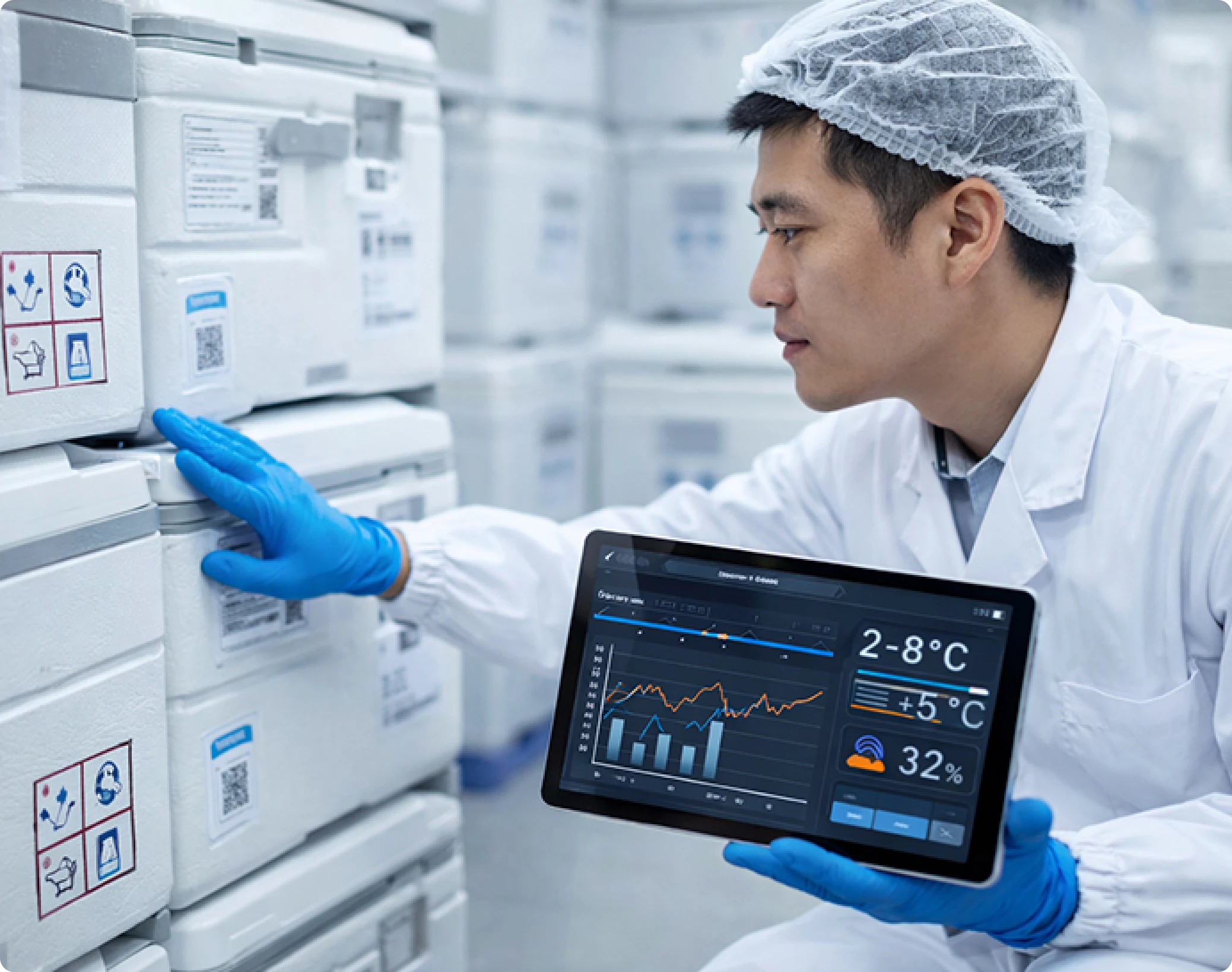Smart Monitoring: Temperature & humidity recorded every 5 minutes, with expiry alerts and batch traceability.