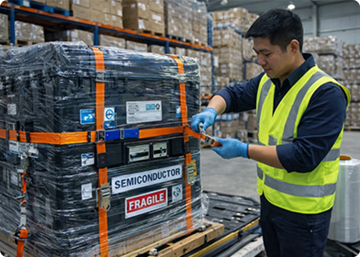 Expert Protection Schemes: Tailored solutions for silicon wafers, chemicals, and equipment, including shock-proof, temperature-controlled, and hazardous material transport. |