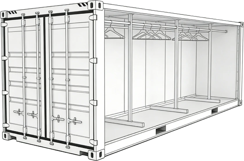 Garments on hangers container